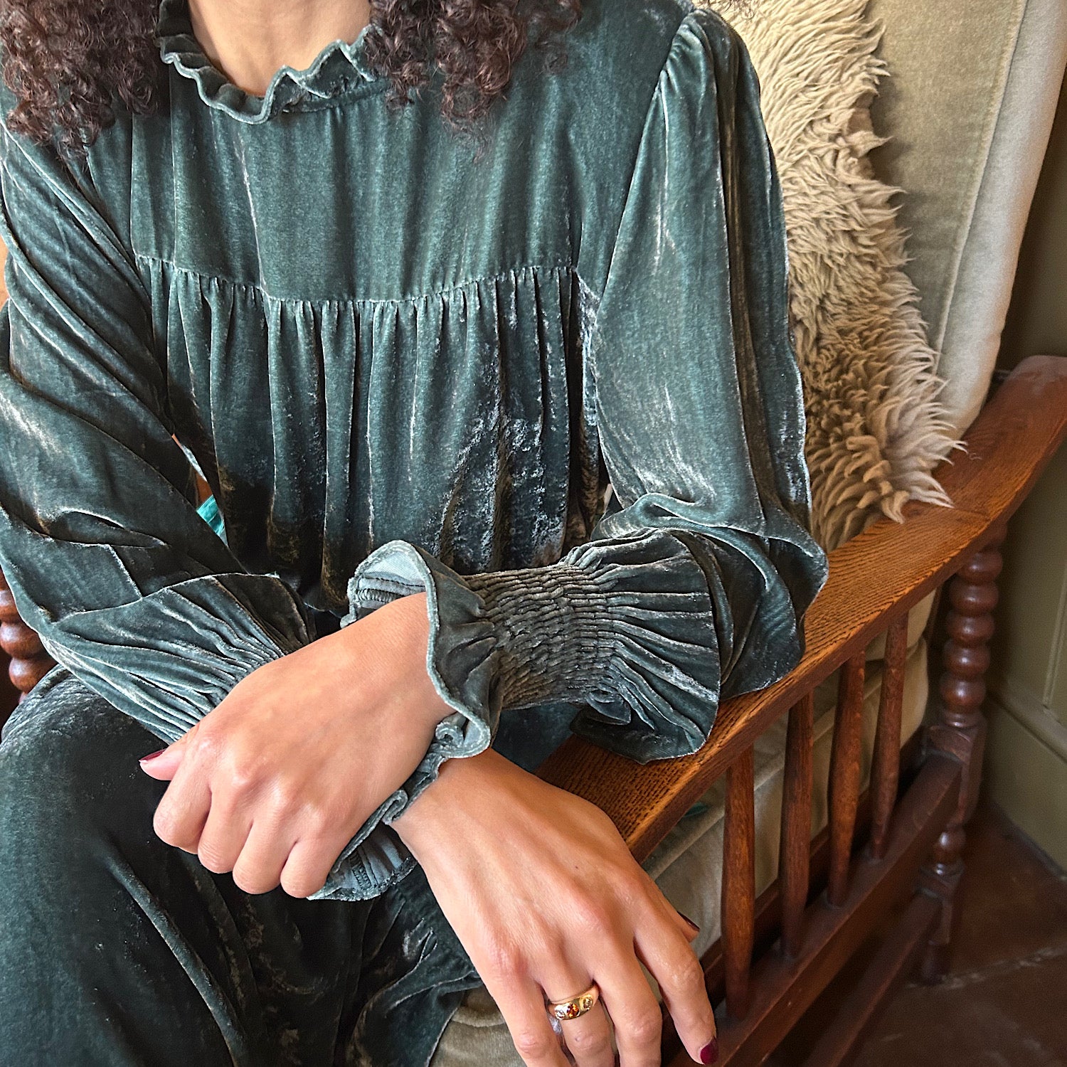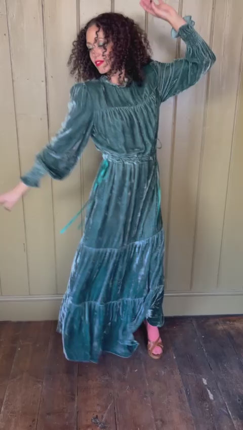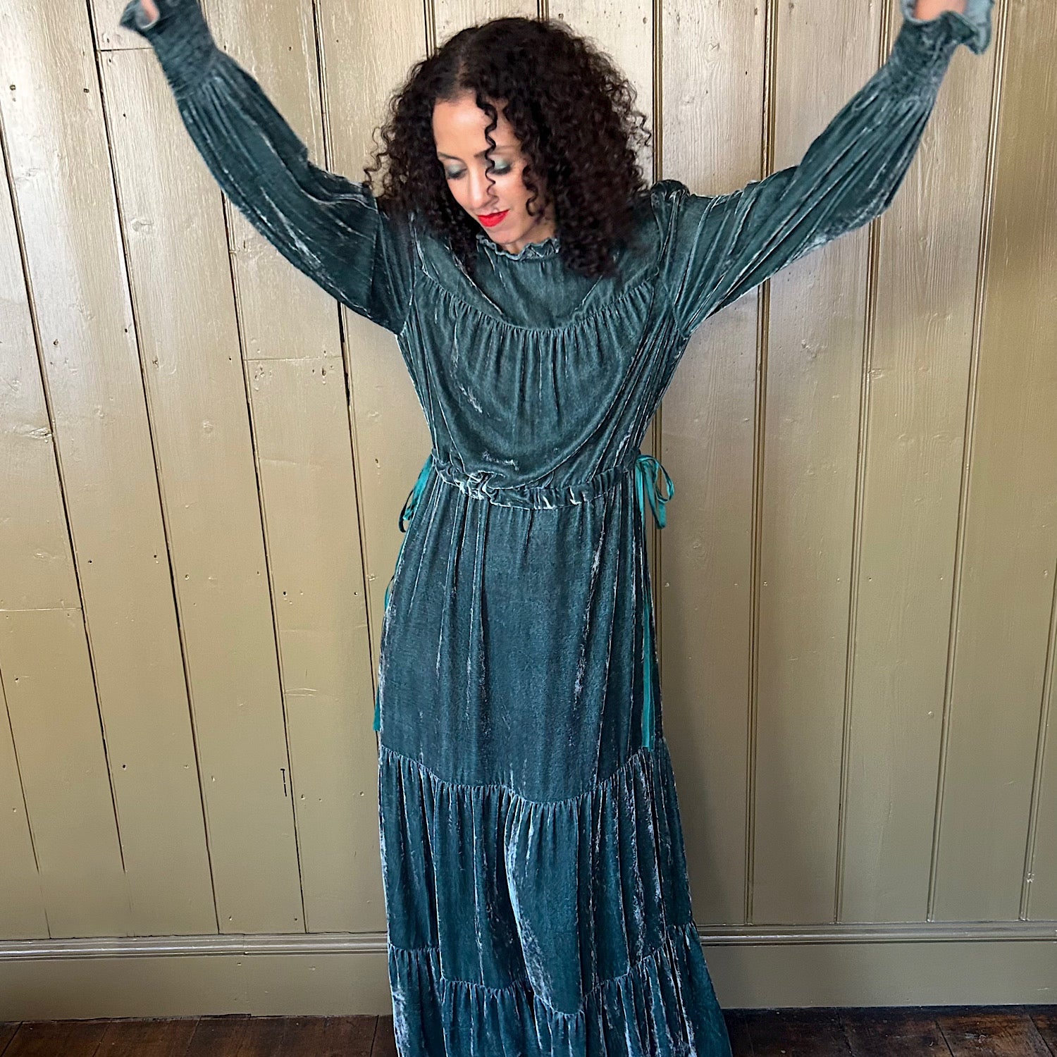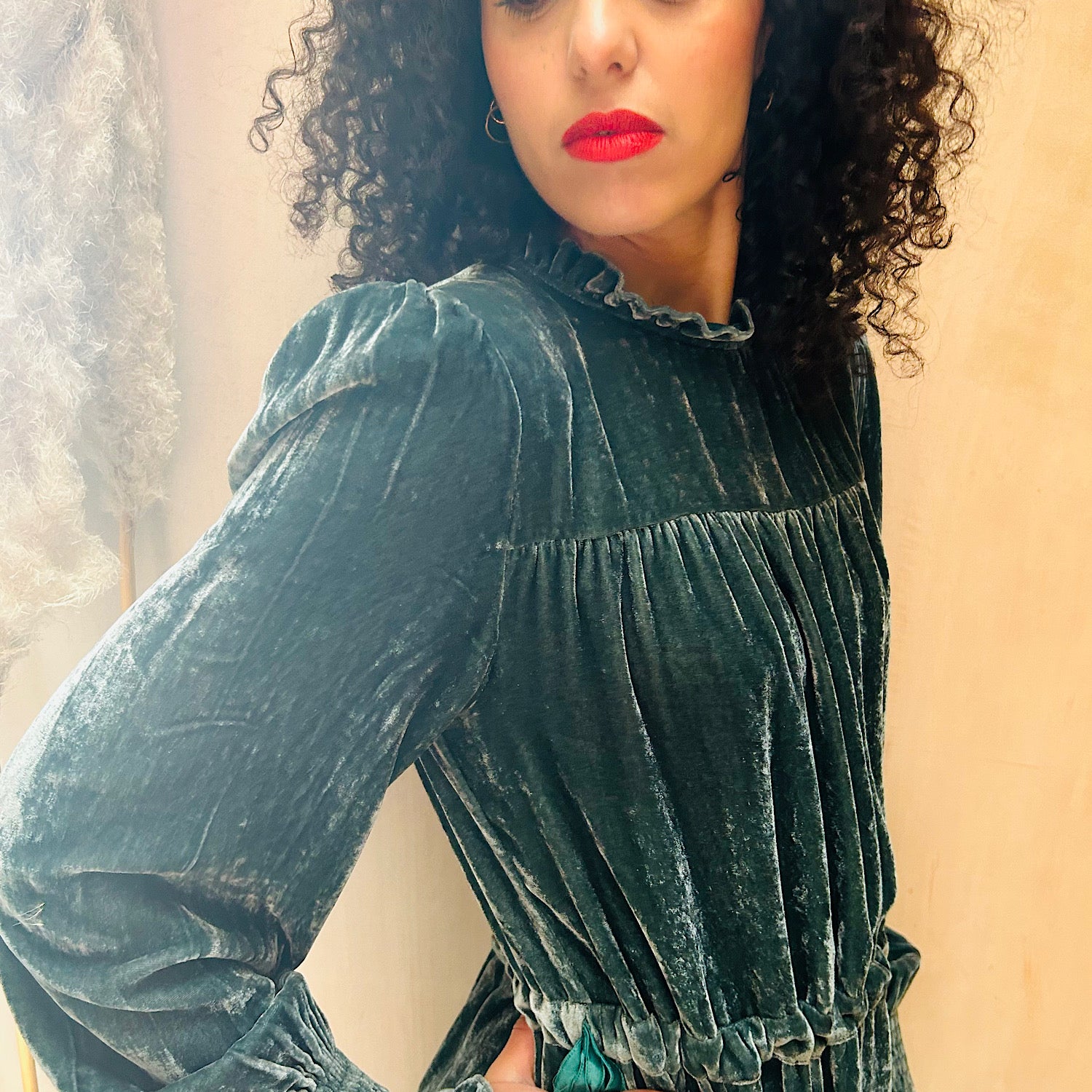 The Abigail dress is a real beauty made in 100% silk velvet.