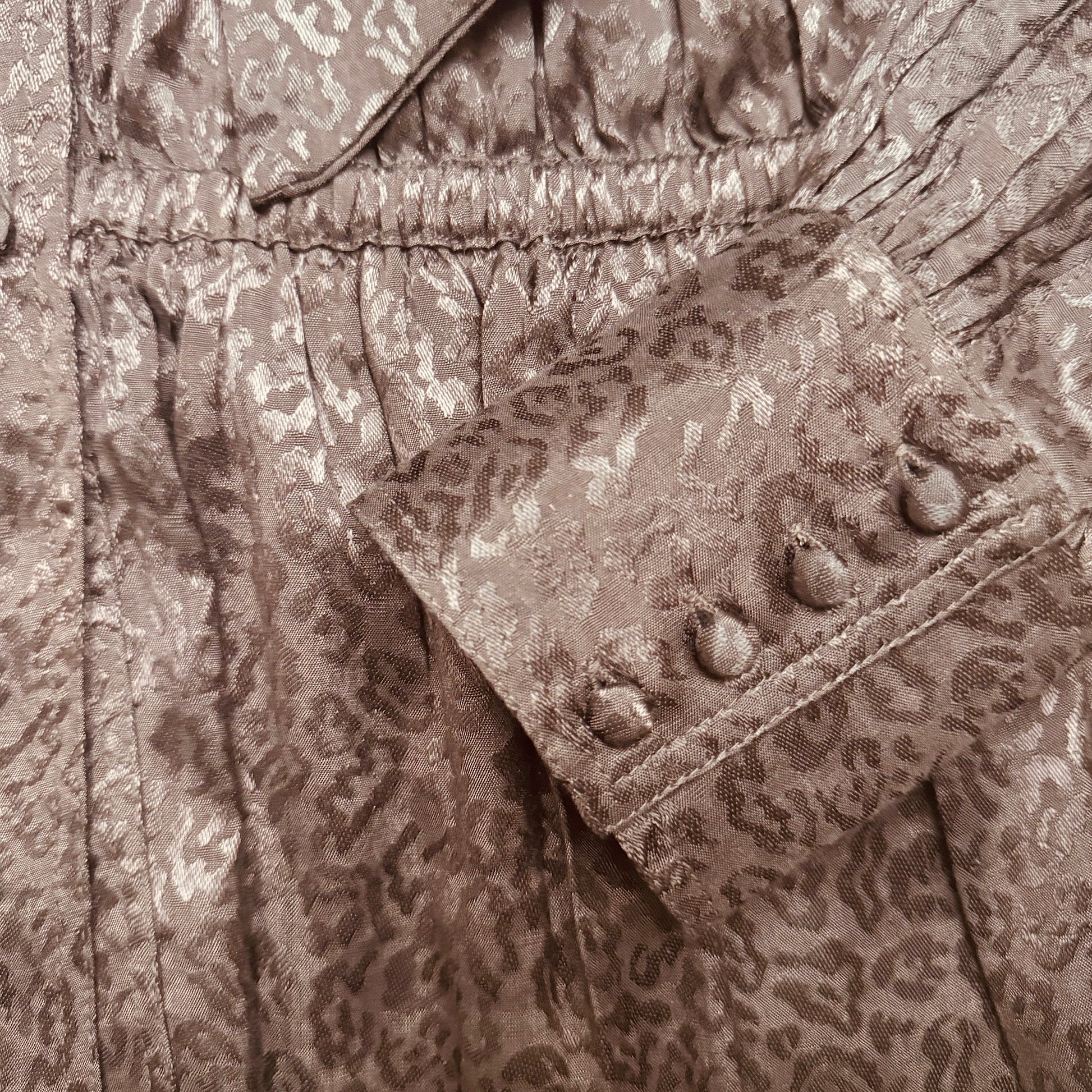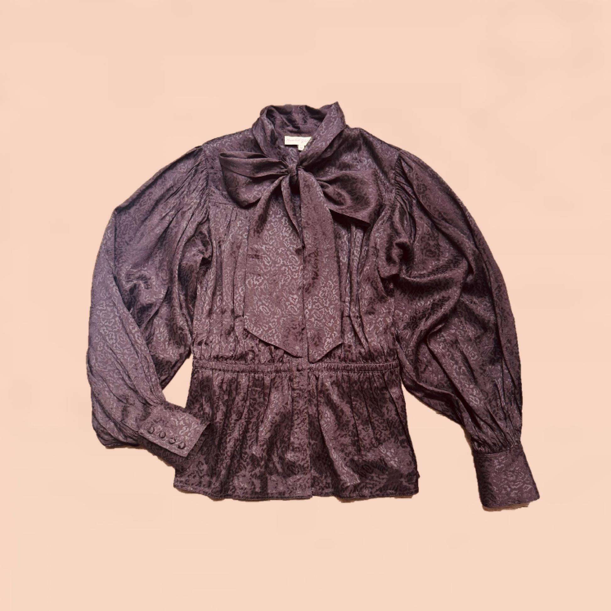 Delphi bow blouse in rich chocolate viscose with leopard jacquard design