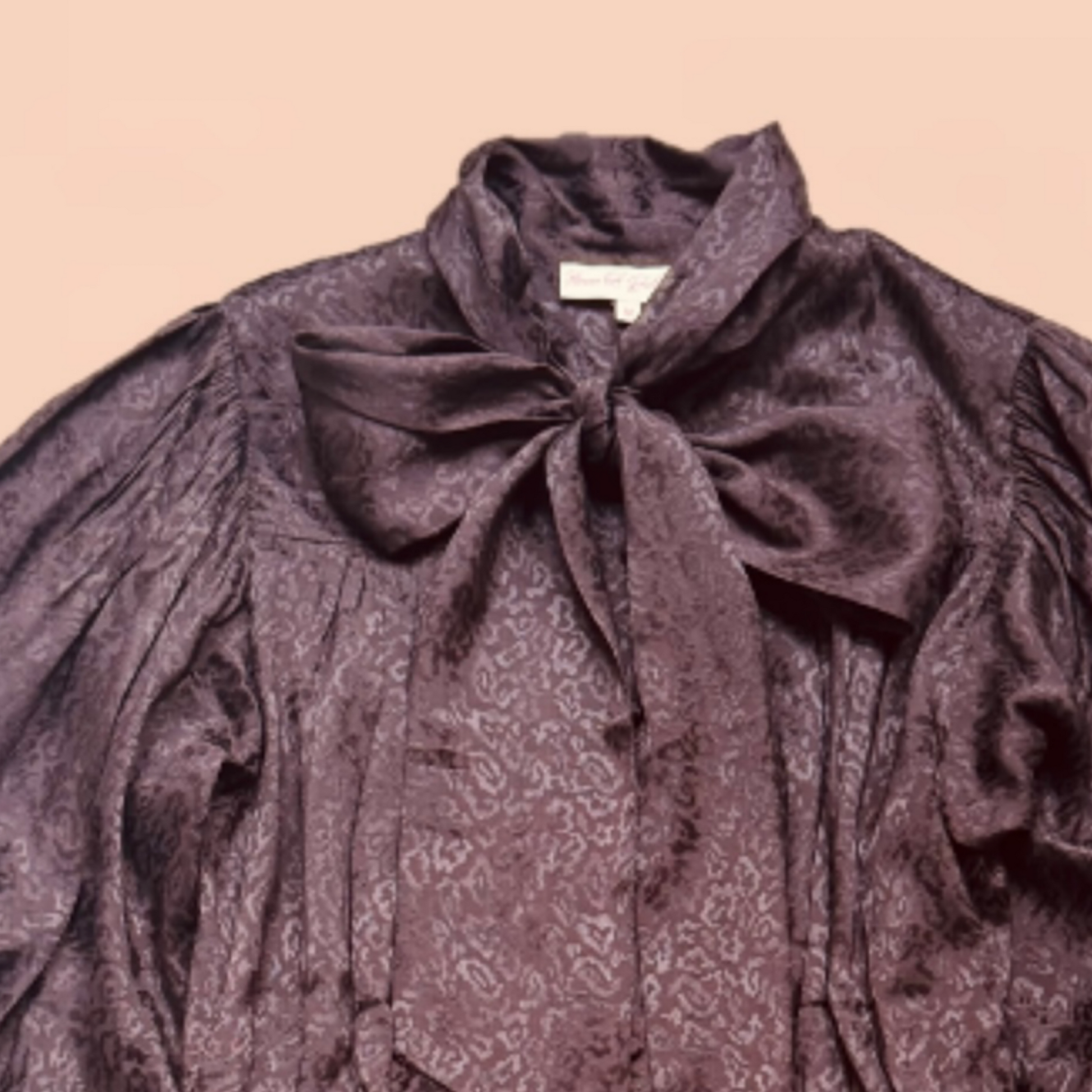 Style with the bow tied loose for a relaxed feel or knot it high for drama! Pair with high rise 70's jeans for effortless contrast - soft volume meets structured denim. Finish with heeled boots or platforms and gold accessories for a look that feels nostalgic yet unmistakably modern!