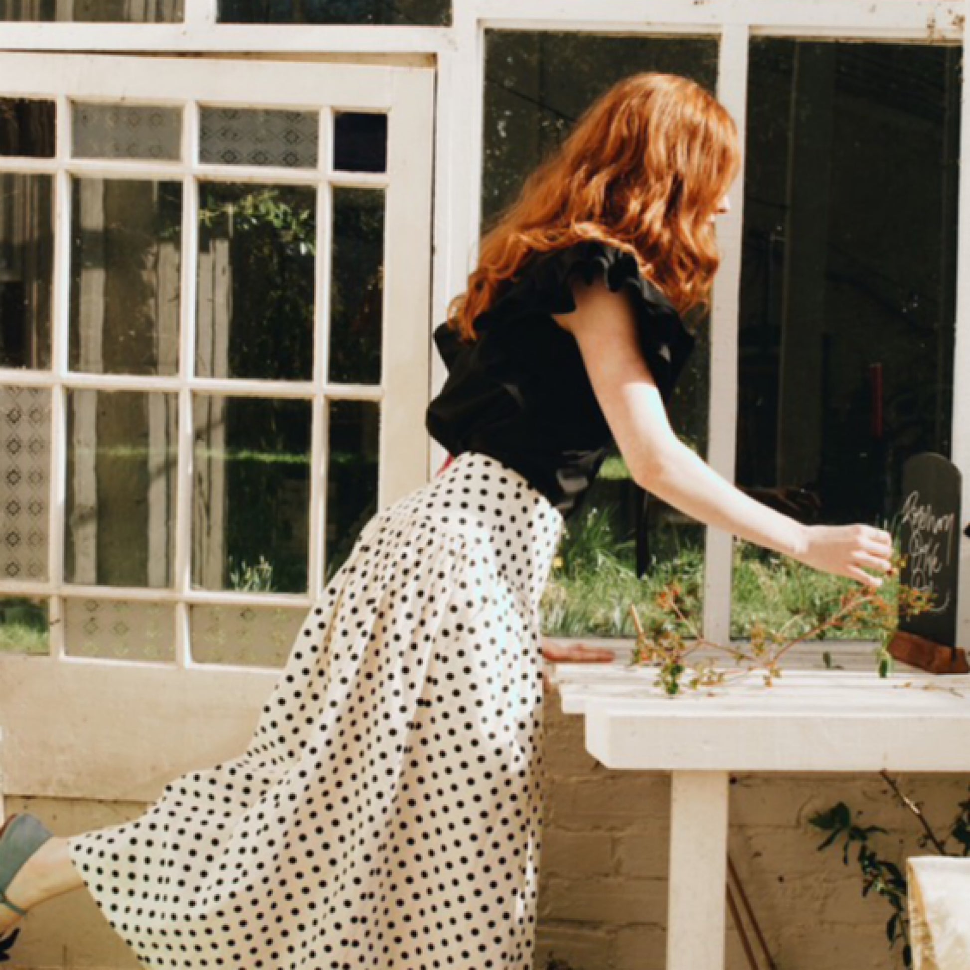 Wear with the Emily spot skirt or the Ottilie skirt for an elevated look or dress down with vintage high waist flares and a high suede clogs.