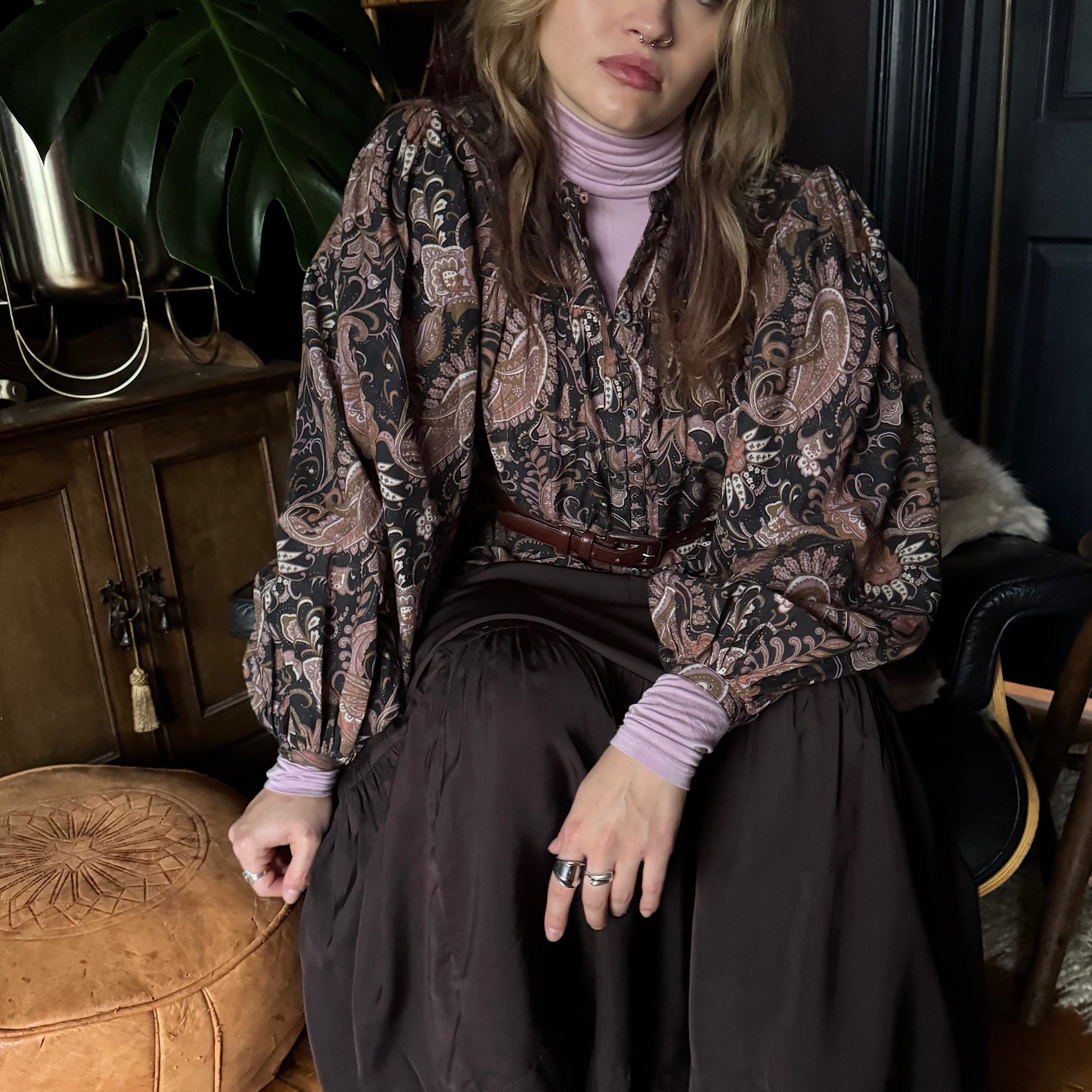 The Stella skirt is cut in a lustrous chocolate satin viscose which drapes effortlessly with a soft and fluid movement.